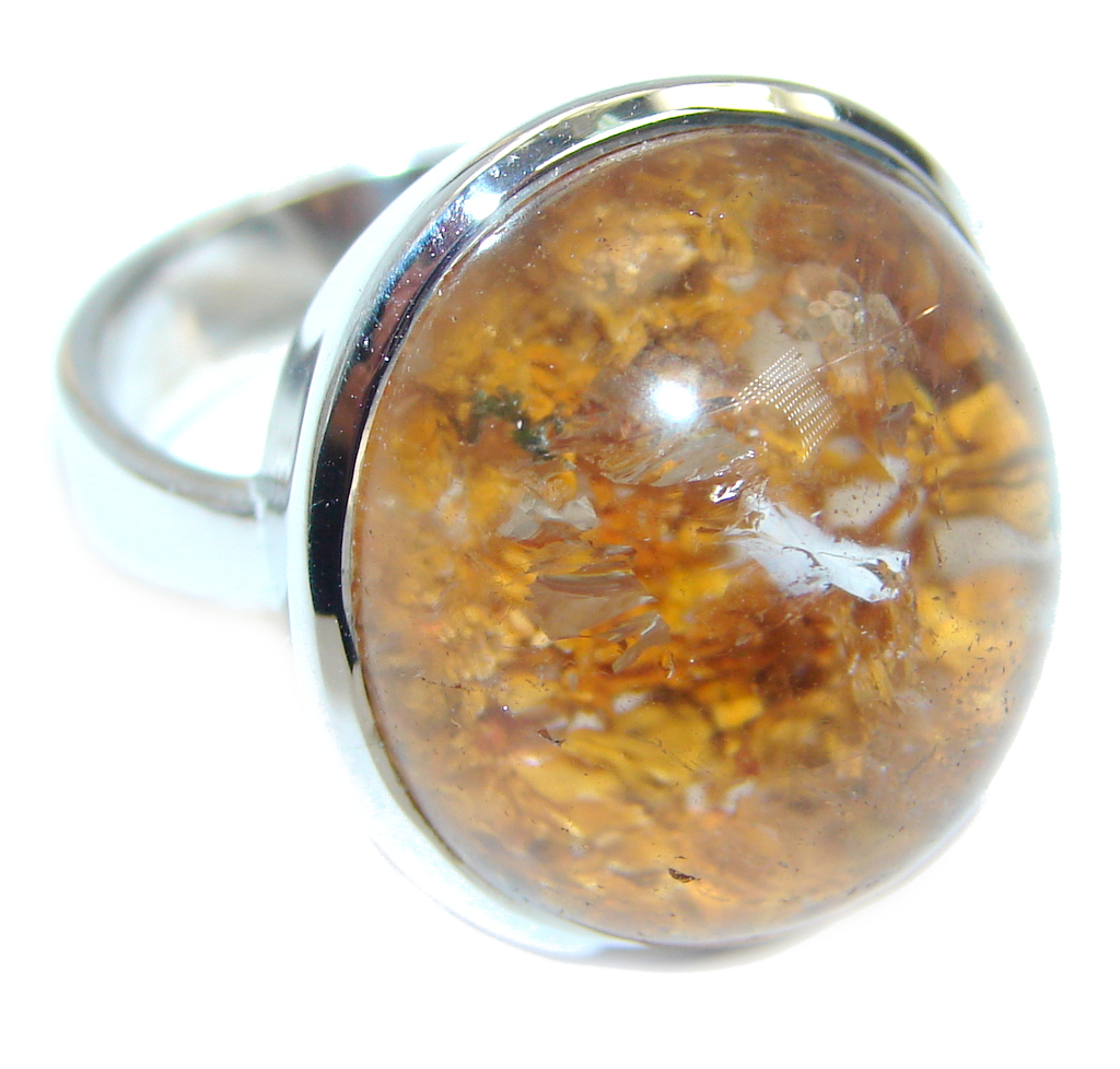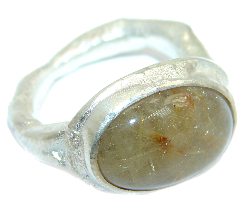 Precious Golden Rutilated Quartz Sterling Silver ring s. 7