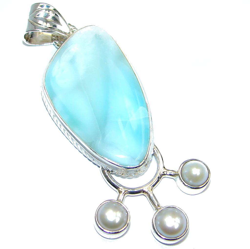 Vintge Style genuine Larimar Pearl Sterling Silver handmade Pendant
