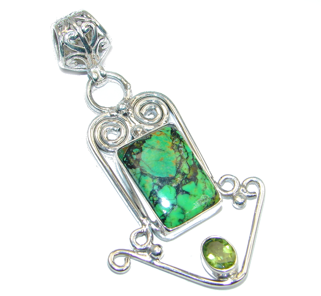 Green Turquoise Peridot Sterling Silver handmade Pendant