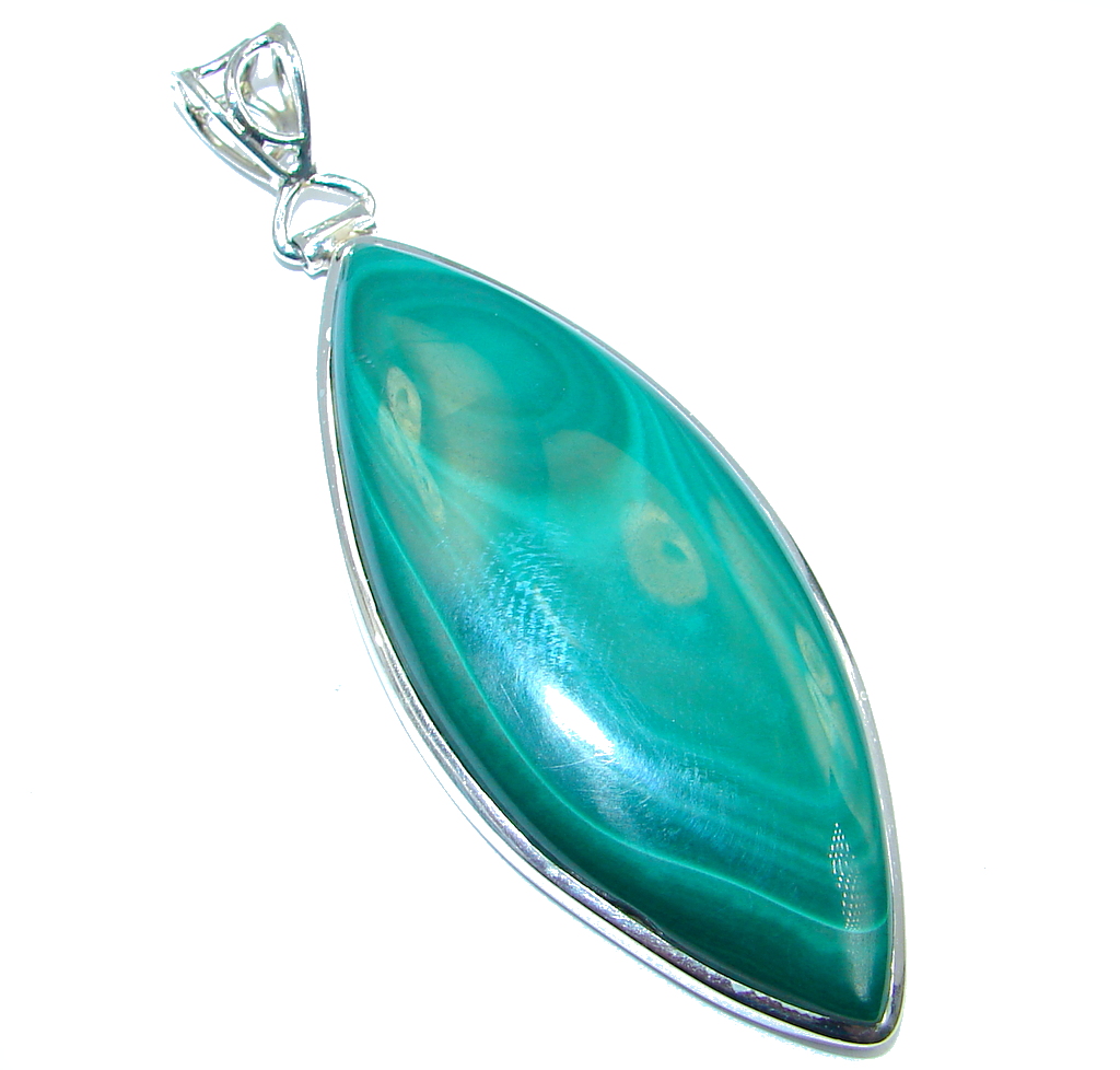 Vintage Style Green Malachite Oxidized Sterling Silver handmade Pendant