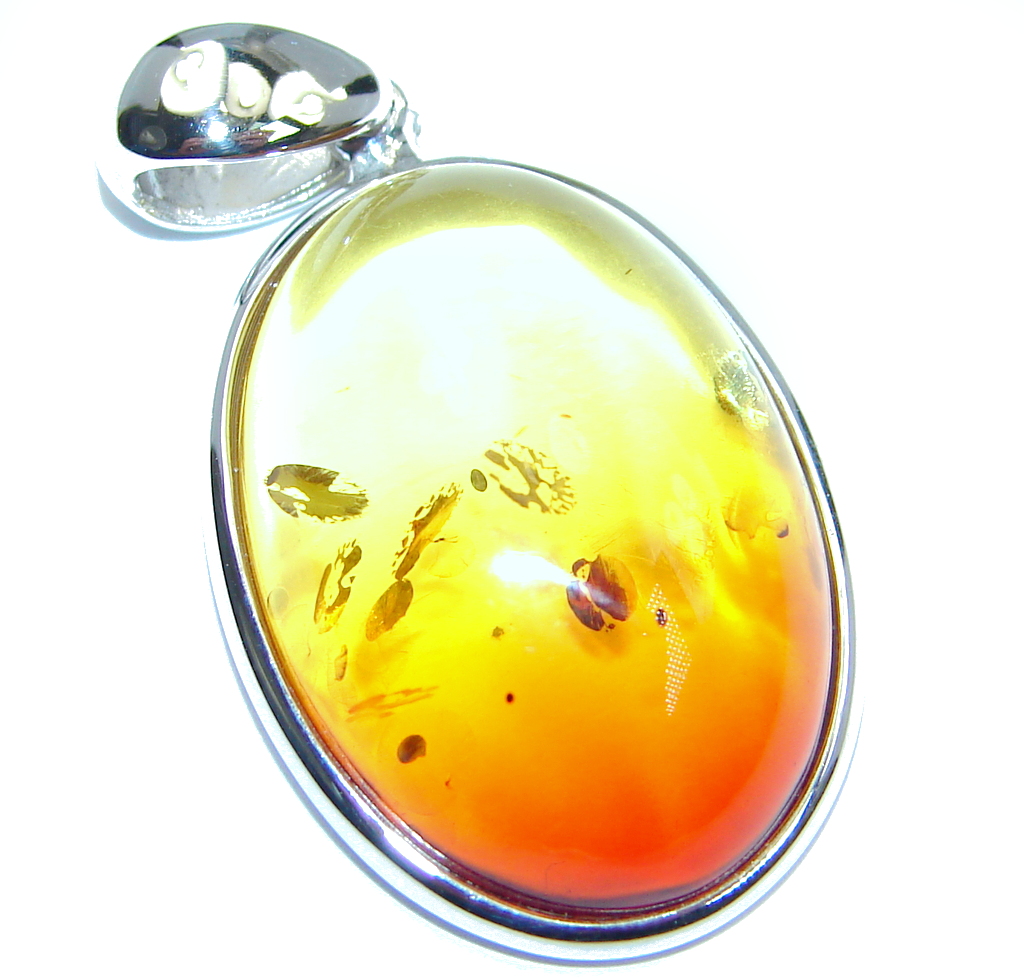 Day and Night natural Baltic Amber Sterling Silver handmade Pendant