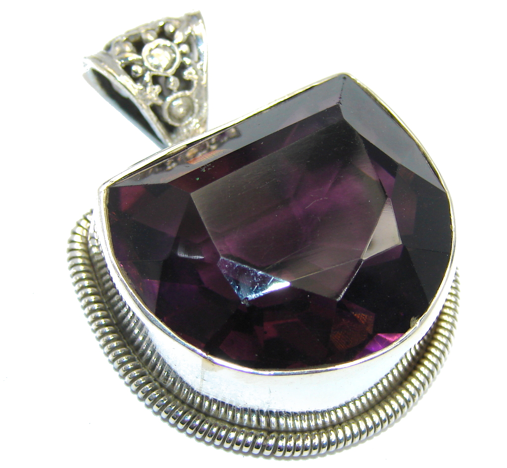 Large Simple created Alexandrite Sterling Silver Pendant