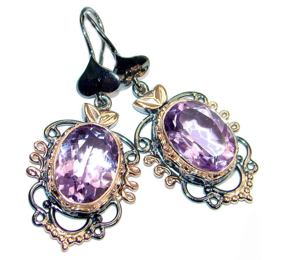 Genuine Amethyst Rose Gold plated over Sterling Silver handmade earrings