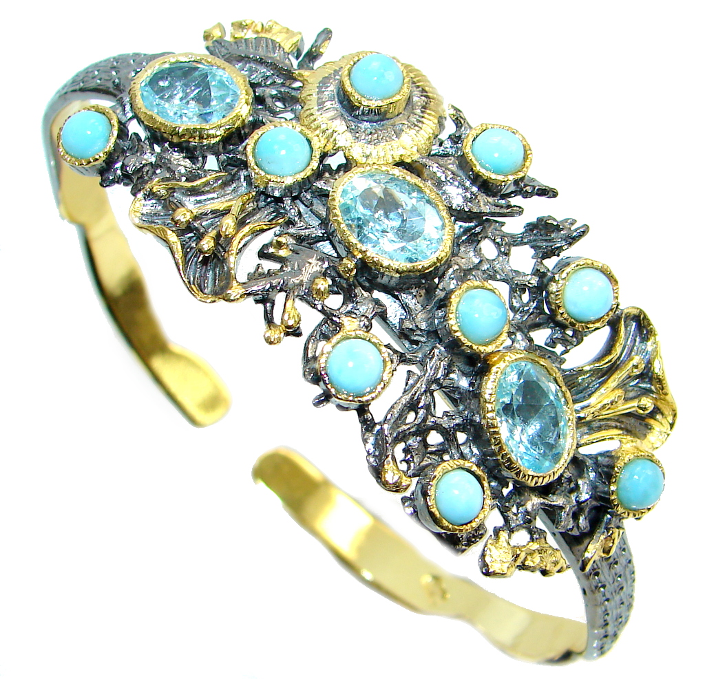 Genuine Blue Larimar 18 ct Gold Rhodium plated over Sterling Silver handmade Bracelet Cuff