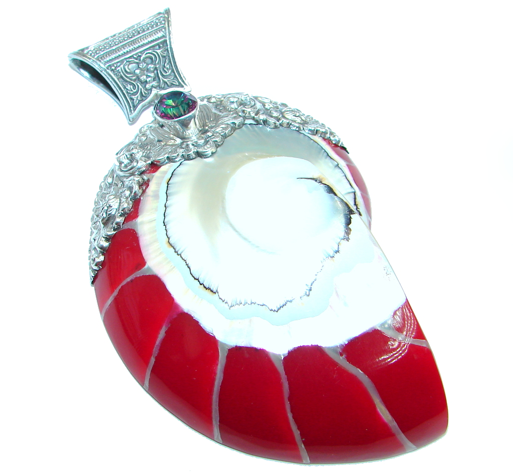 Rich Design Massive 67.8 grams Genuine NAUTILUS SHELL Sterling Silver handmade Pendant