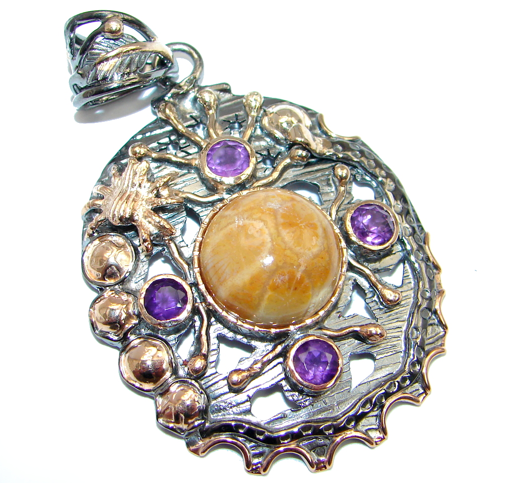 Natural Fossilized Coral Amethyst Gold plated over Sterling Silver Pendant