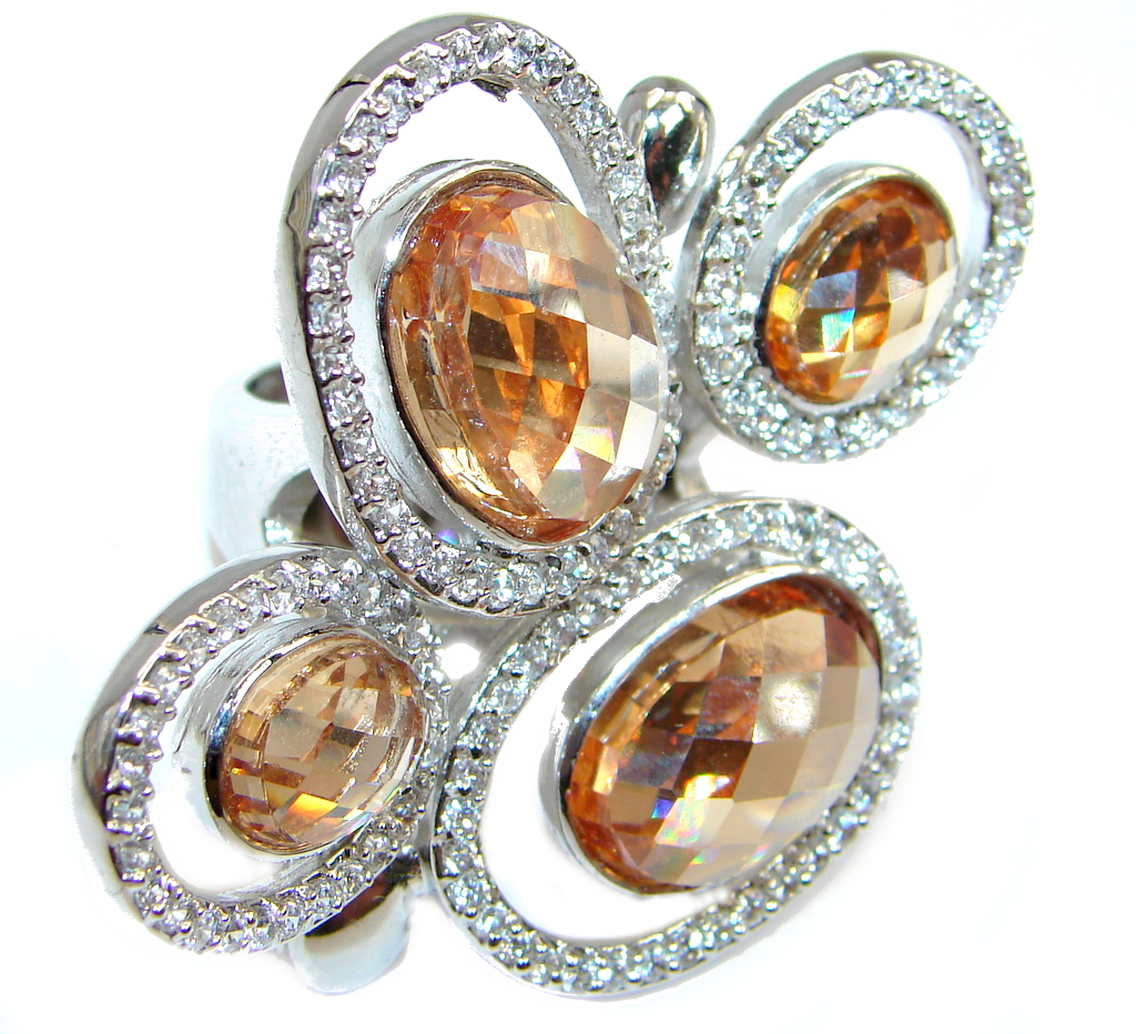 Large Spectacular created Golden Topaz Sterling Silver Ring size 8