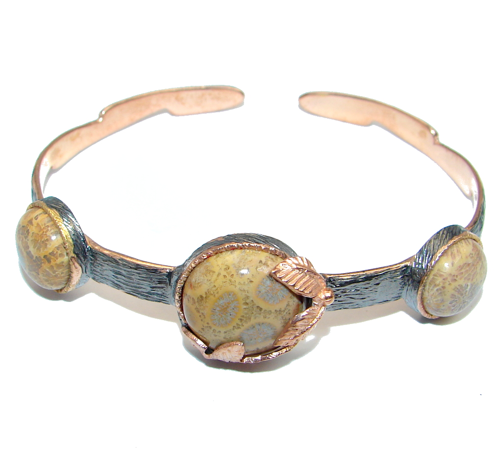 Chunky Genuine Fossilized Coral Rose Gold Rhodium plated over Sterling Silver Bracelet / Cuff