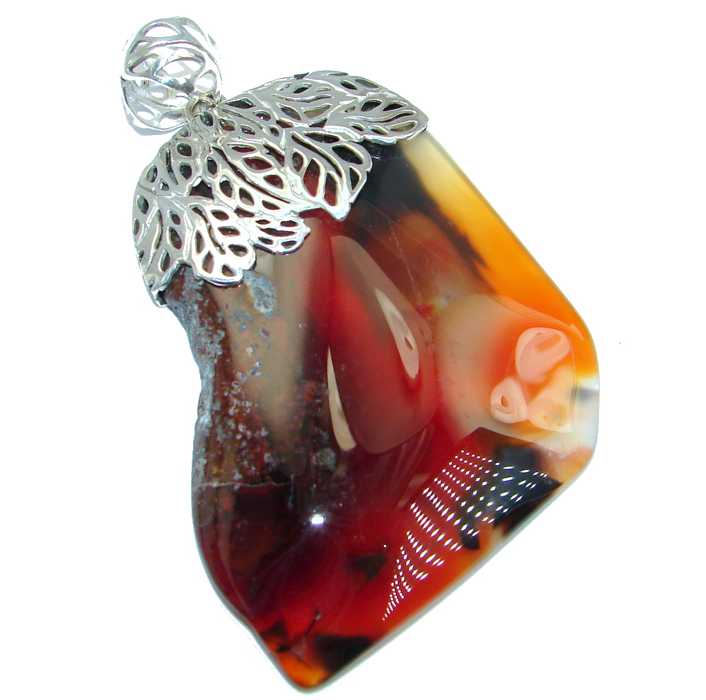 Large Orange Aura Botswana Agate Sterling Silver handmade Pendant