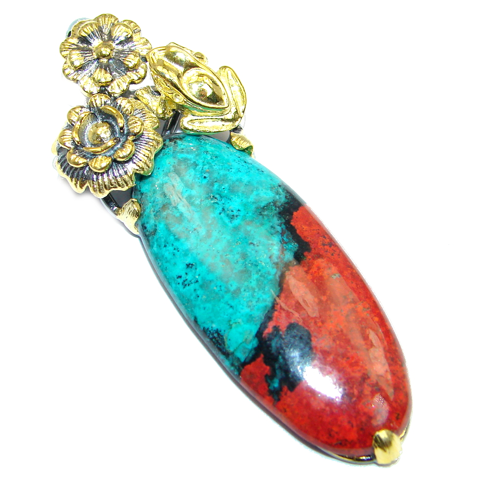 Very Unique Natural Sunrise Sonora Jasper Gold plated over Sterling Silver handmade Pendant