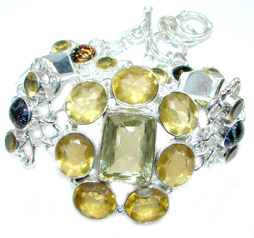 Modern Concept Yellow Quartz Silver Tone Bracelet
