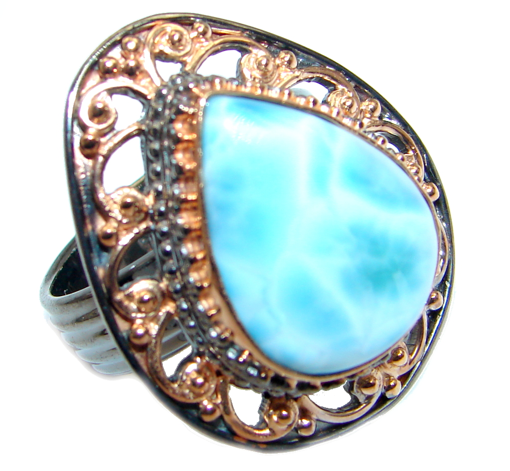 Solid Genuine Larimar Rose Gold plated over Sterling Silver handmade Ring size adjustable