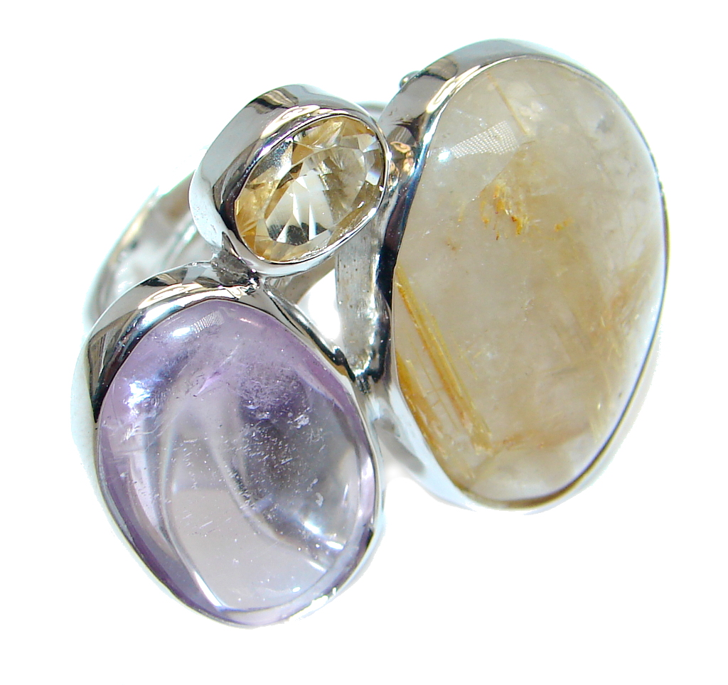 Pale Beauty Golden Rutilated Quartz Sterling Silver ring size adjustable