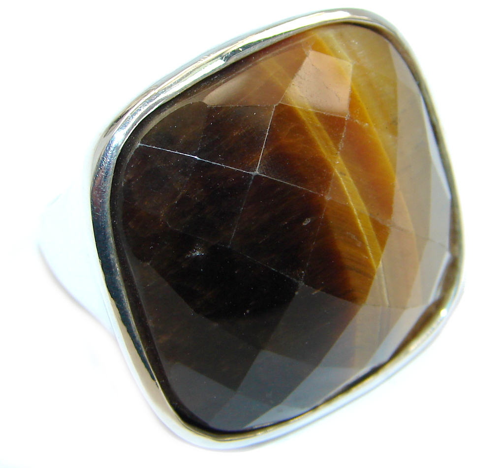 Simple faceted Tigers Eye Sterling Silver ring size 8 3/4