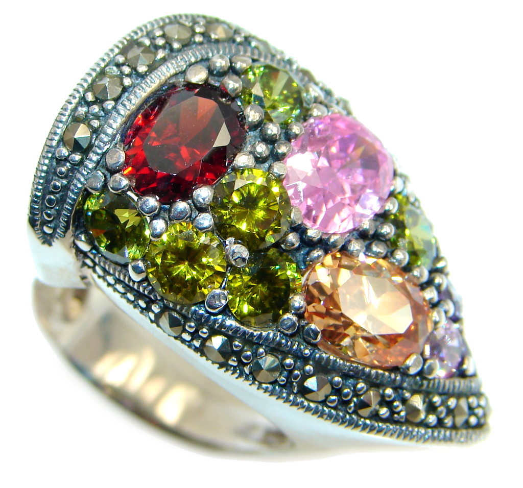 Great Cubic Zirconia Marcasite Sterling Silver handcrafted Ring size 8
