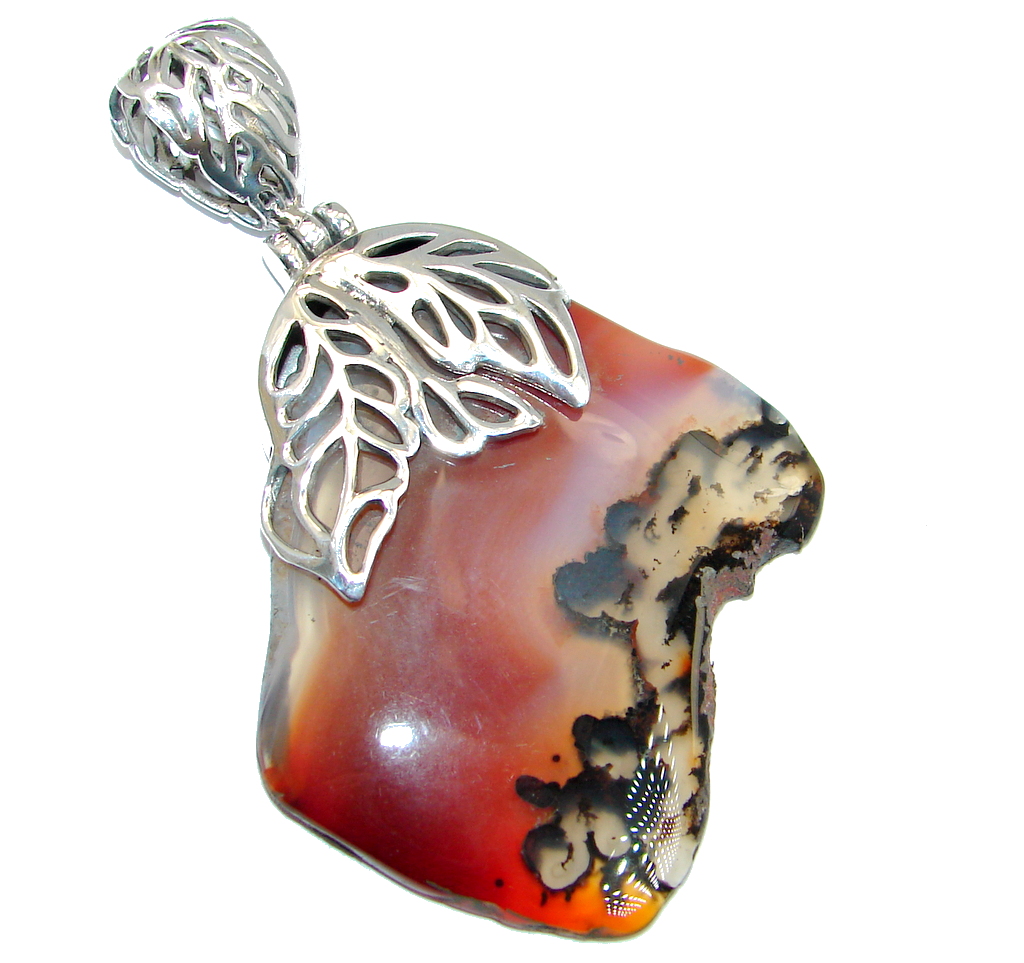 Orange Aura Botswana Agate Sterling Silver handmade Pendant