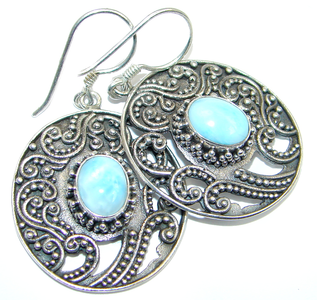 Precious Blue Larimar Oxidized Sterling Silver handmade earrings