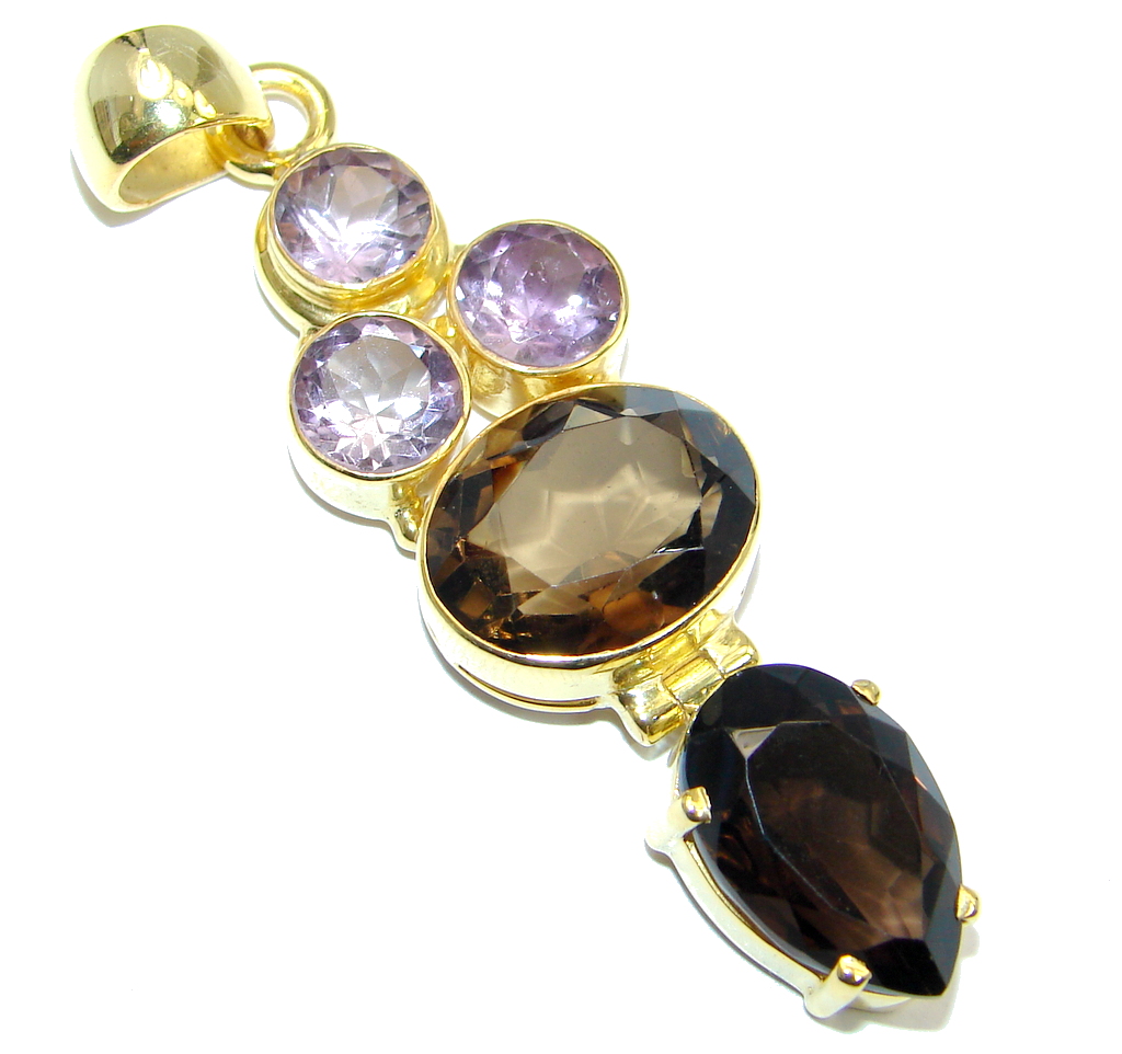 Exclusive Smoky Topaz Gold plated over Sterling Silver handmade Pendant