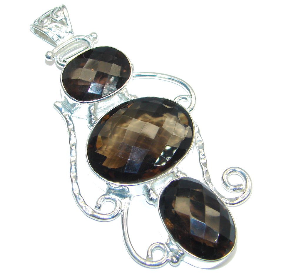 Large Rare Smoky Topaz Sterling Silver handmade Pendant