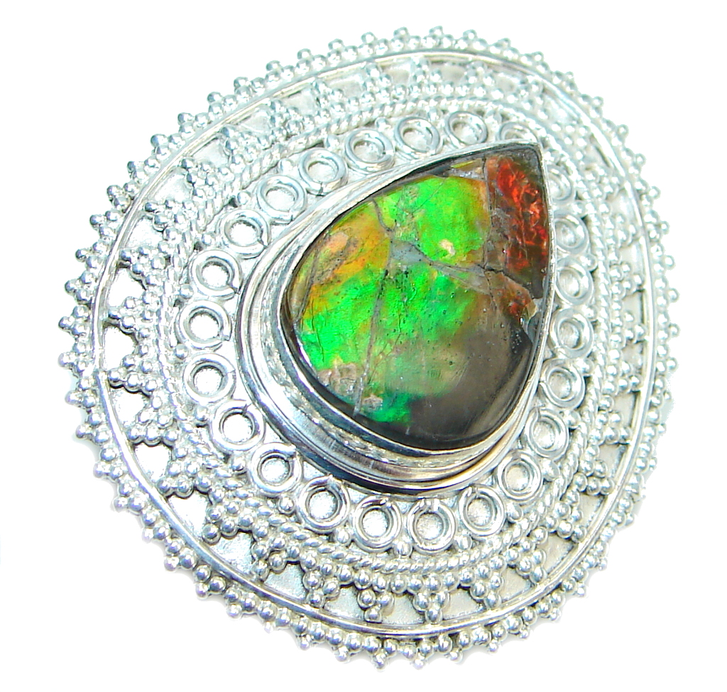 Authentic Canadian Ammolite Sterling Silver ring s. 6 handmade