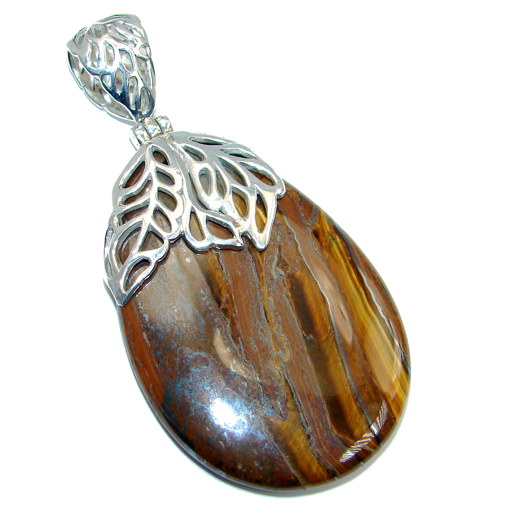 Oversized Golden Tigers Eye Sterling Silver handmade Pendant
