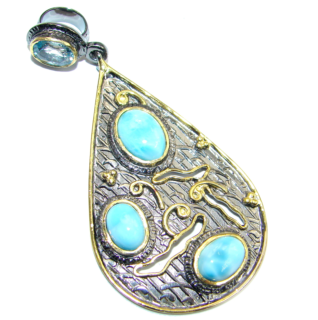 Enchanted genuine Larimar Swiss Blue Topaz Sterling Silver handmade Pendant