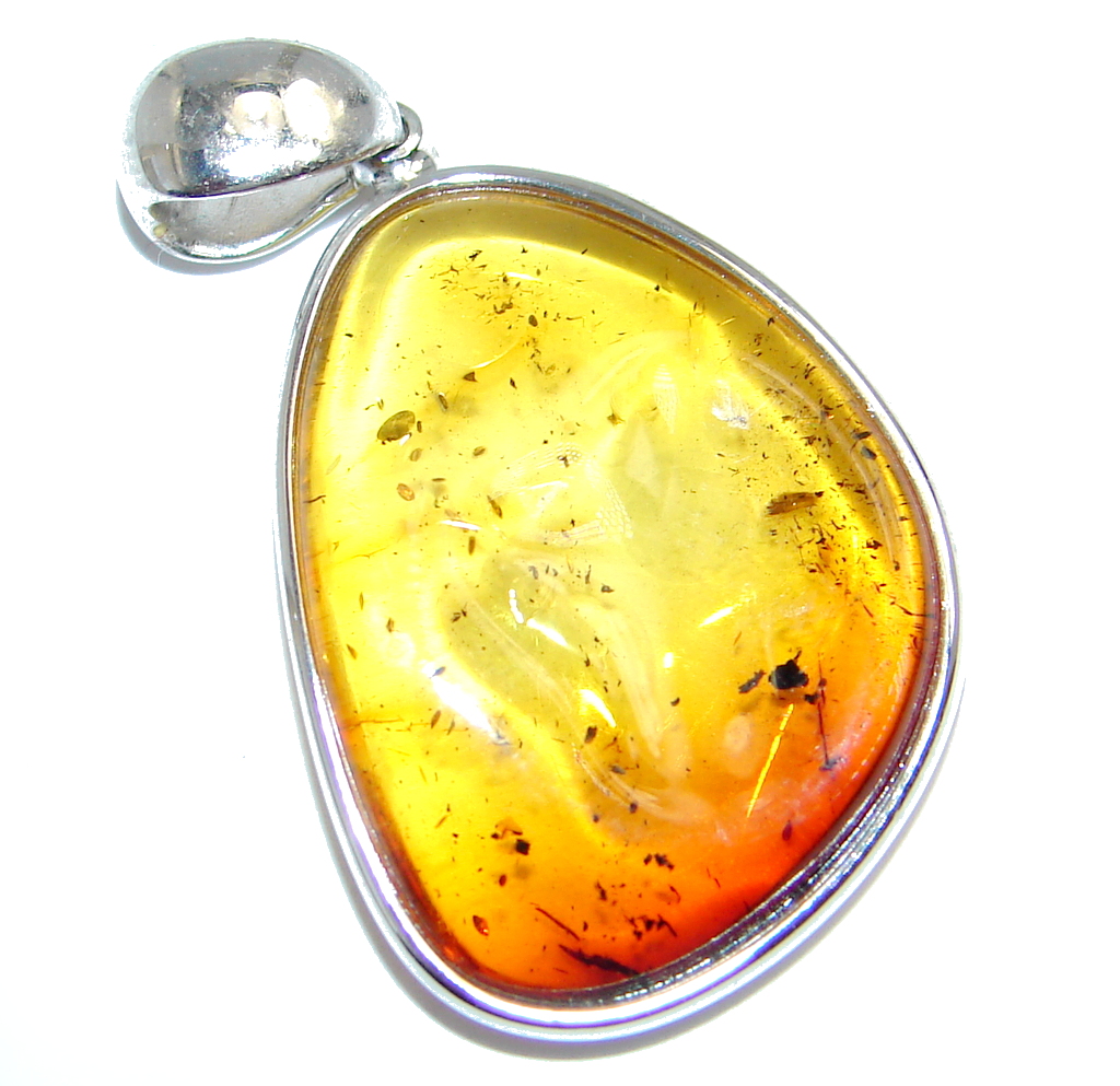 Sunset natural Baltic Amber Sterling Silver handmade Pendant
