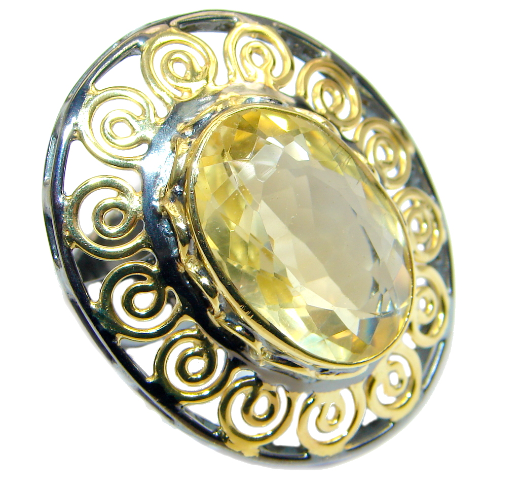Huge genuine Citrine Gold Rhodonite plated over Sterling Silver handmade ring size adjustable