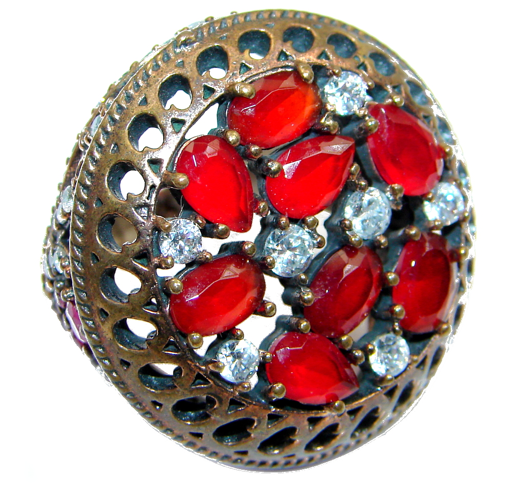 Victorian Style created Ruby & White Topaz Sterling Silver ring; s. 7