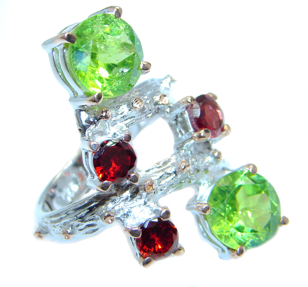 Large Garnet Peridot Rose Gold plated over Sterling Silver ring; s. 8