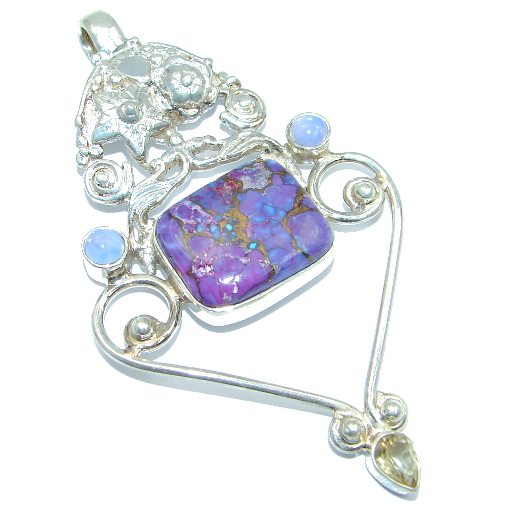 Oriental Design Genuine Purple Turquoise Sterling Silver handmade Pendant