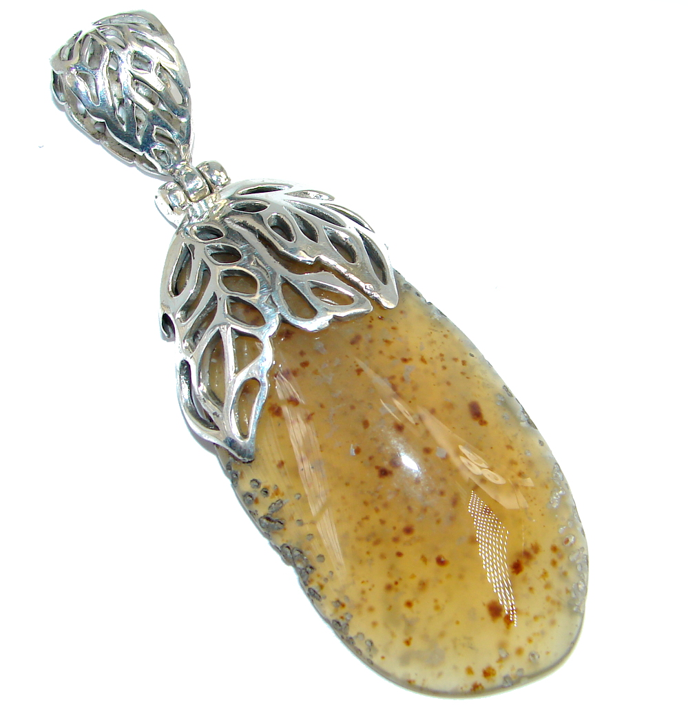 Oversized! Amazing Beauty Dendritic Agate Sterling Silver necklace