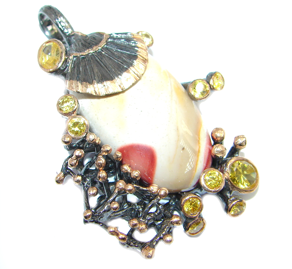 Natural Australian Brecciated Mookaite Citrine Sterling Silver handcrafted Pendant