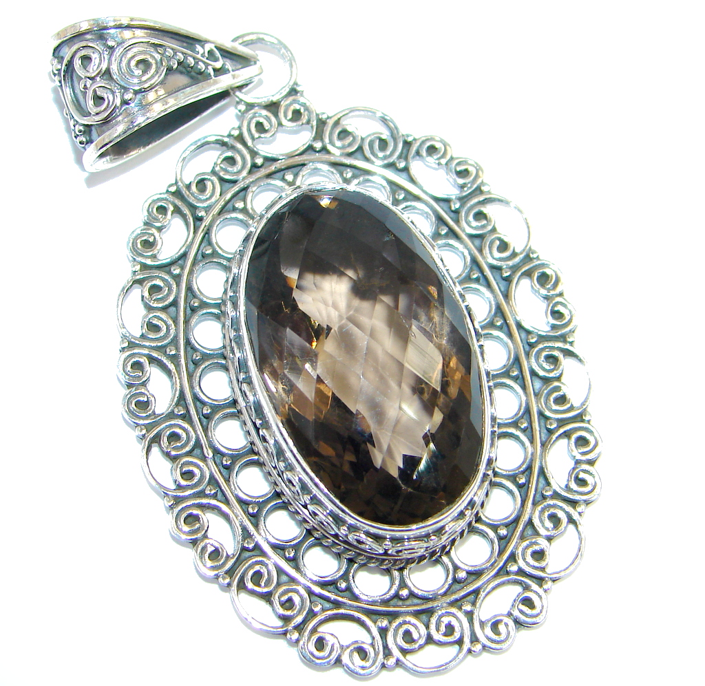 Vintage Style Beauty Smoky Topaz Oxidized Sterling Silver handmade Pendant
