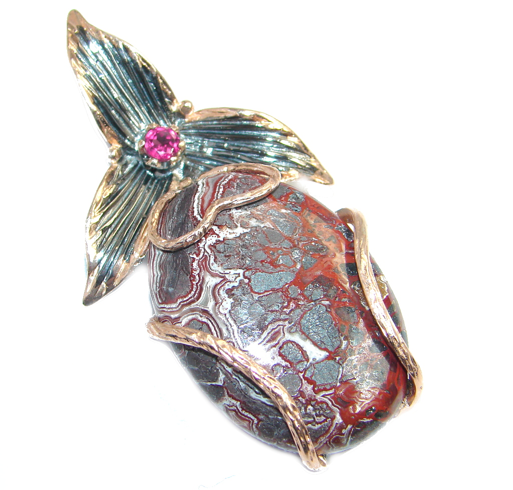 Large genuine Crazy Lace Agate Garnet Gold plated over Sterling Silver pendant