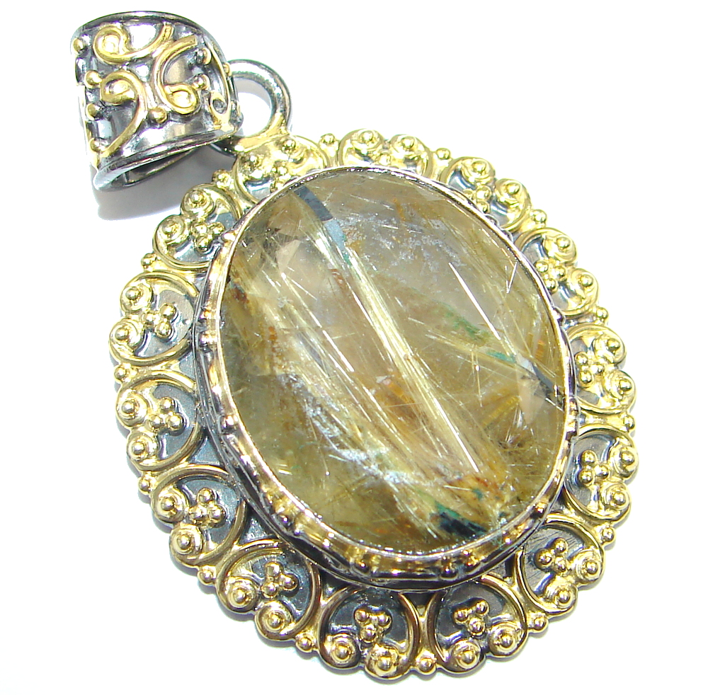 Himalayan Treasure Golden Rutilated Quartz Gold plated over Sterling Silver Pendant