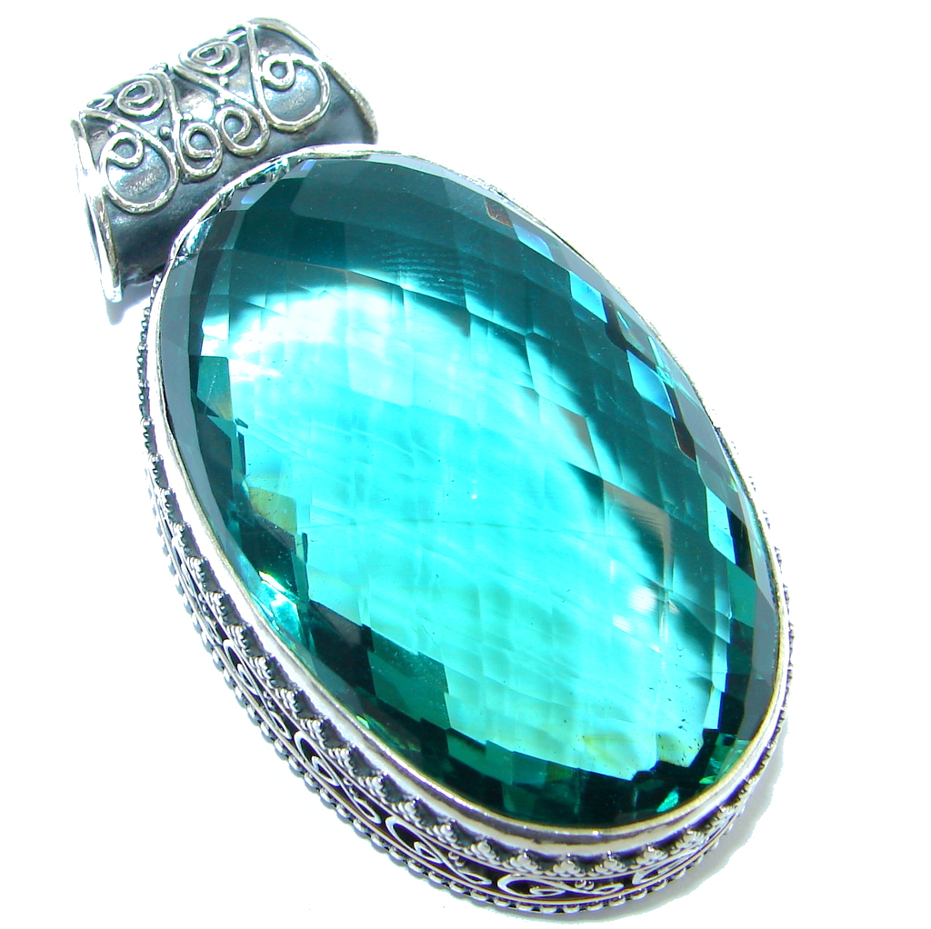 Large Vintage Style Yellow color Quartz Sterling Silver Pendant