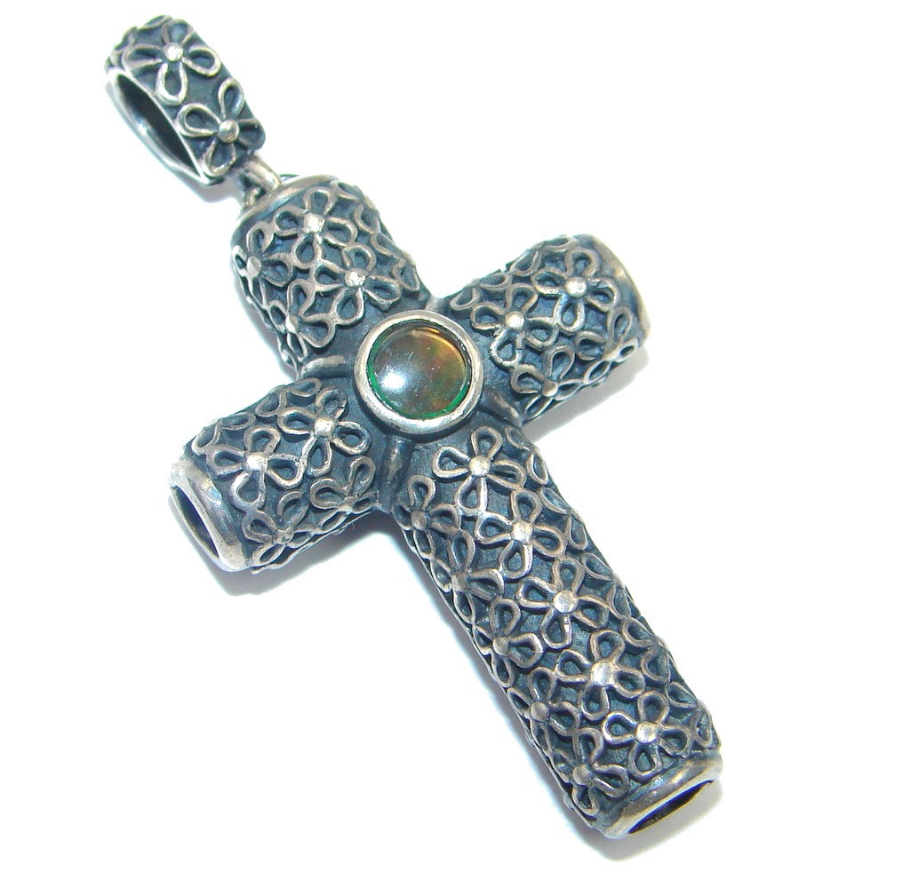 Canadian Ammolite Fossil Sterling Silver handcrafted Pendant / Cross