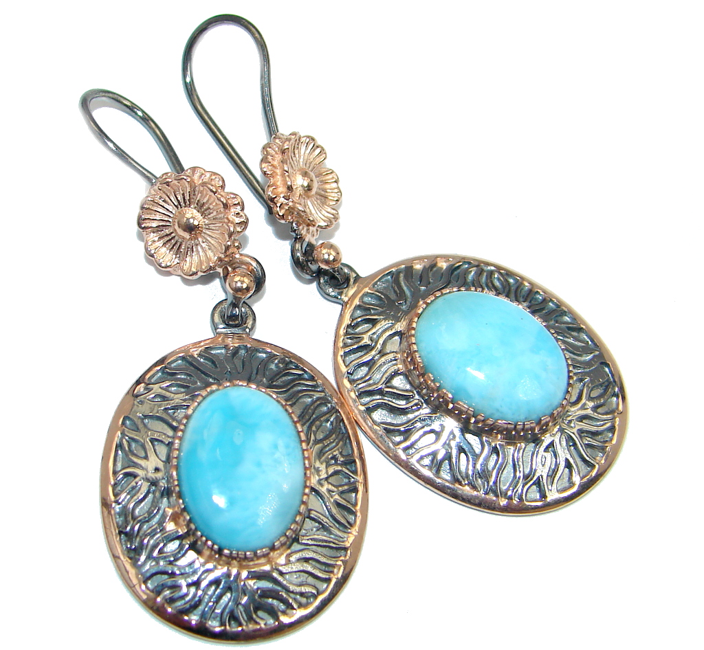 Vintage Style Blue Larimar Rose Gold plated with Sterling Silver handmade earrings