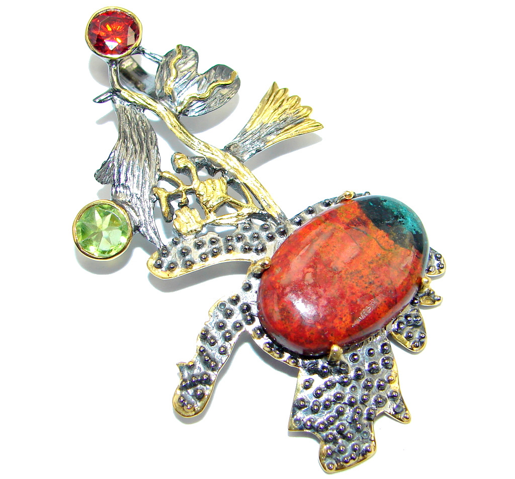 Unique Natural Sunrise Sonora Jasper Gold plated over Sterling Silver handmade Pendant