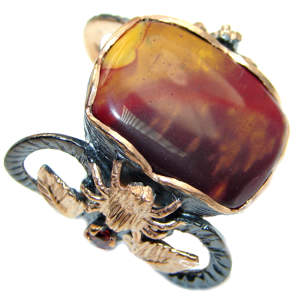 Fine Art Australian Mookaite Gold plated over Sterling Silver handmade Ring size 8