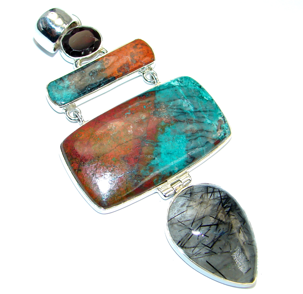 Large Unique Natural Sunrise Sonora Jasper Garnet Sterling Silver handmade Pendant