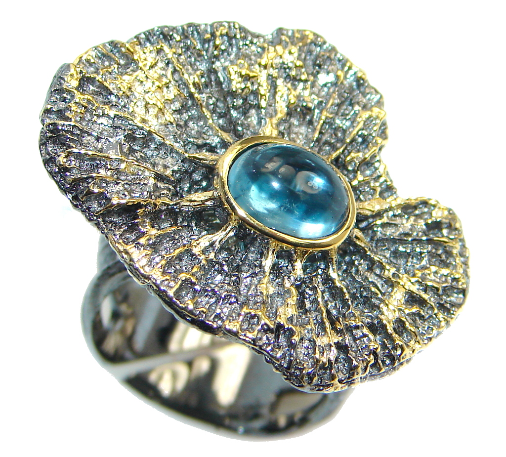 Julietta Blue Topaz Sterling Silver handmade ring size 6 adjustable