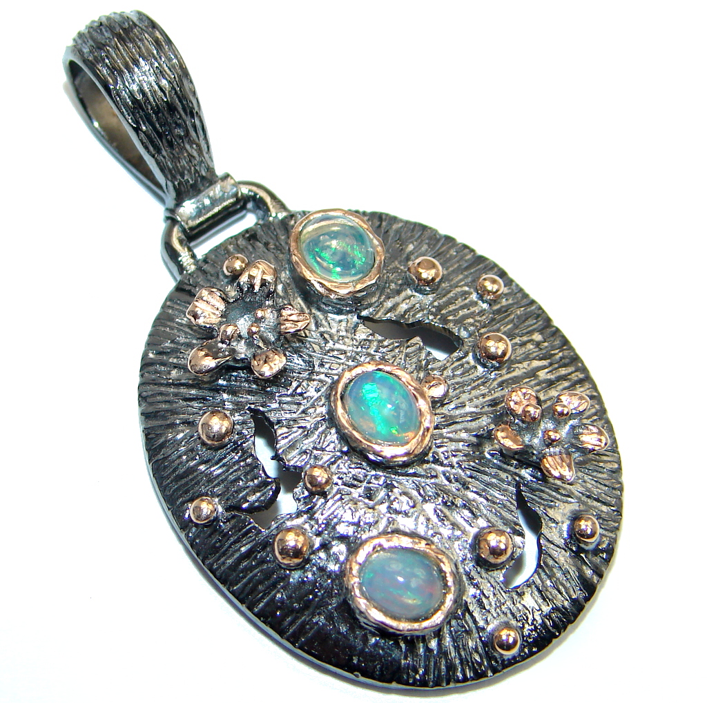 Genuine Ethiopian Opal Oxidized Gold plated Sterling Silver handmade Pendant