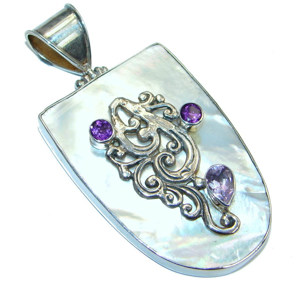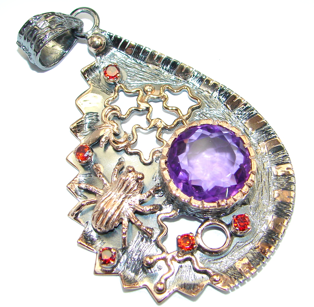 Vintage Style genuine Amethyst Gold plated over Sterling Silver handmade Pendant
