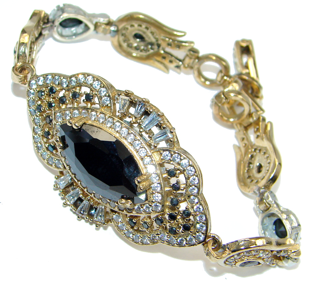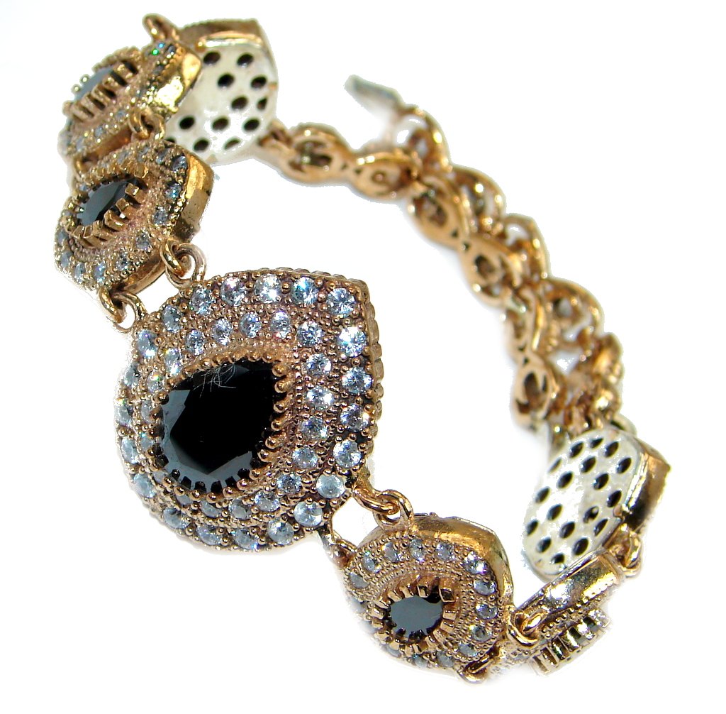 Flawless Faceted Onyx Gold Rhodium plated over Sterling Silver Bracelet