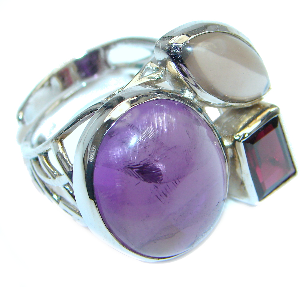 Purple Aura Amethyst Sterling Silver ring size 7 adjustable