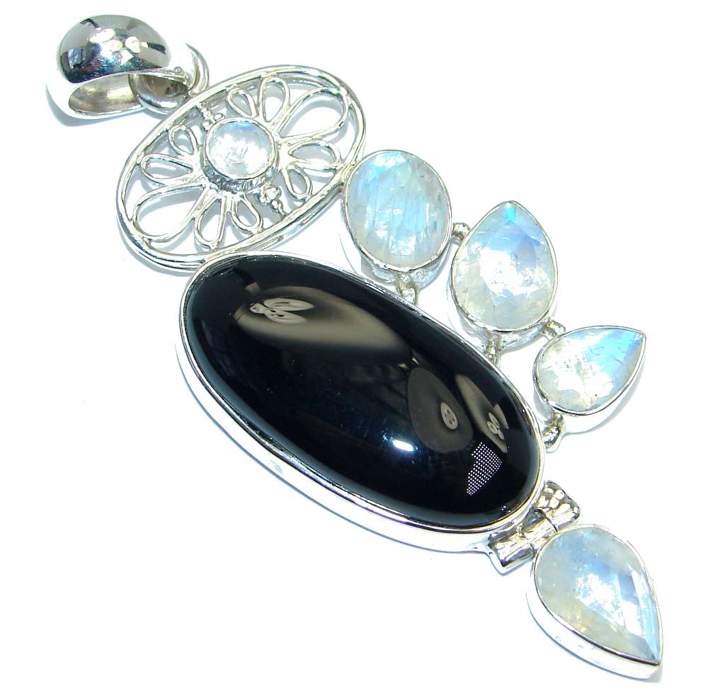 Huge Amazing Black Onyx Swiss Blue Topaz Sterling Silver handmade Pendant
