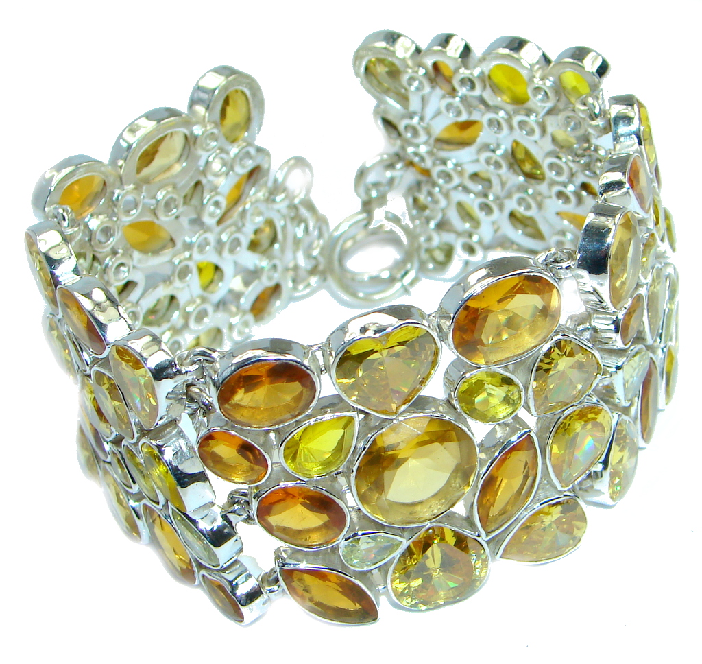 Chic Hoho Yellow River Chunky Cubic Zirconia Sterling Silver handmade Bracelet