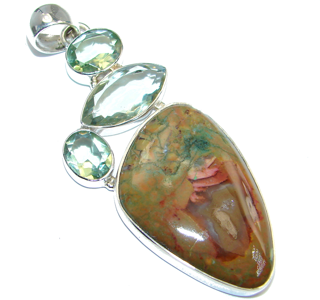 Exquisite Green Rainforest Jasper Green Amethyst Sterling Silver handmade Pendant